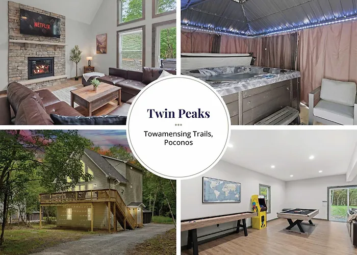 A Twin Chalet - 6 Bds Hot Tub Game Area And More Albrightsville está localizada a uma distância de 4.5 km do Jim Thorpe Memorial e dispõe de piscina, garantindo uma estadia relaxante.